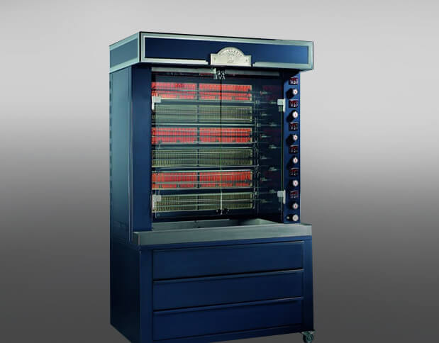 Ob selbstreinigende Durchreiche-Rotisserie oder Flammenwand-Schaugrill, ob Gas- oder Elektrobetrieb, ob Hi-Tech oder nostalgisch, mit seiner großen Angebotspalette von Rotisserien bietet UBERT seit über 50 Jahren das richtige Gerät für jede Anwendung. Weltweit sind unsere Rotisserien in 5 Kontinenten bei allen großen Supermarktketten im Einsatz. Ein gegrilltes Produkt aus einer UBERT-Rotisserie hat mehr Geschmack und den typischen, unnachahmlichen Grillcharakter.